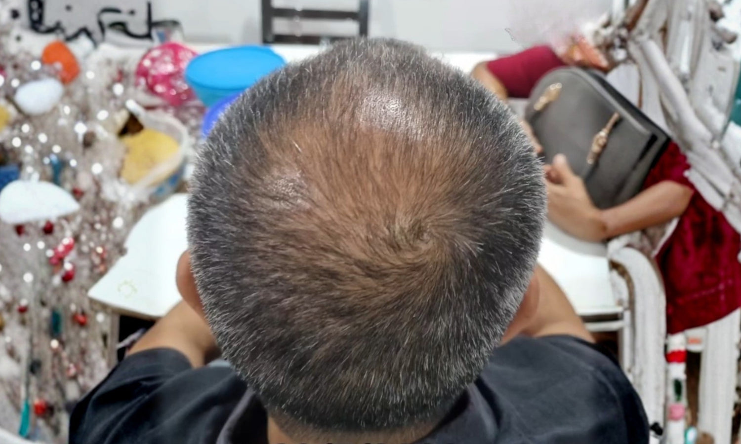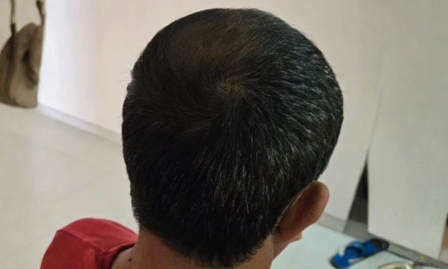 Visible improvement in hairline health after regular use of Sharda Amrutam Regrowth Hair Oil, Nirdosh Shampoo, and Natural Hair Colour. Crafted with natural ingredients to support stronger, healthier-looking hair.